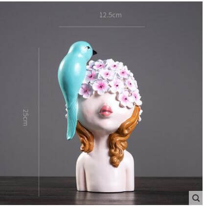 Elevate your home decor with this stunning bird lady figurine, bringing a touch of elegance and vibrancy to your space.